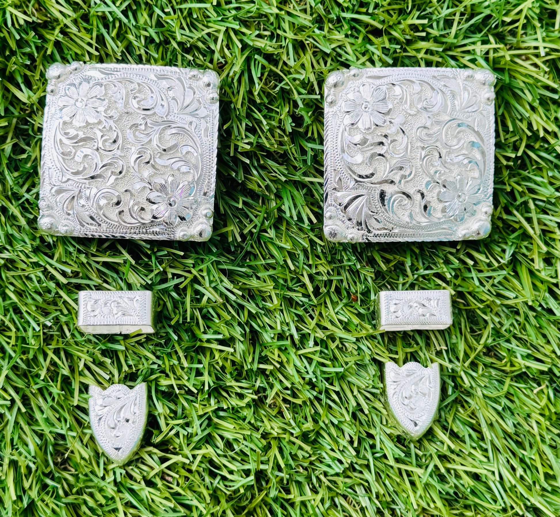 Set of 2, includes loops and tips. For 5/8” strap. Tips have chicago screw backs.