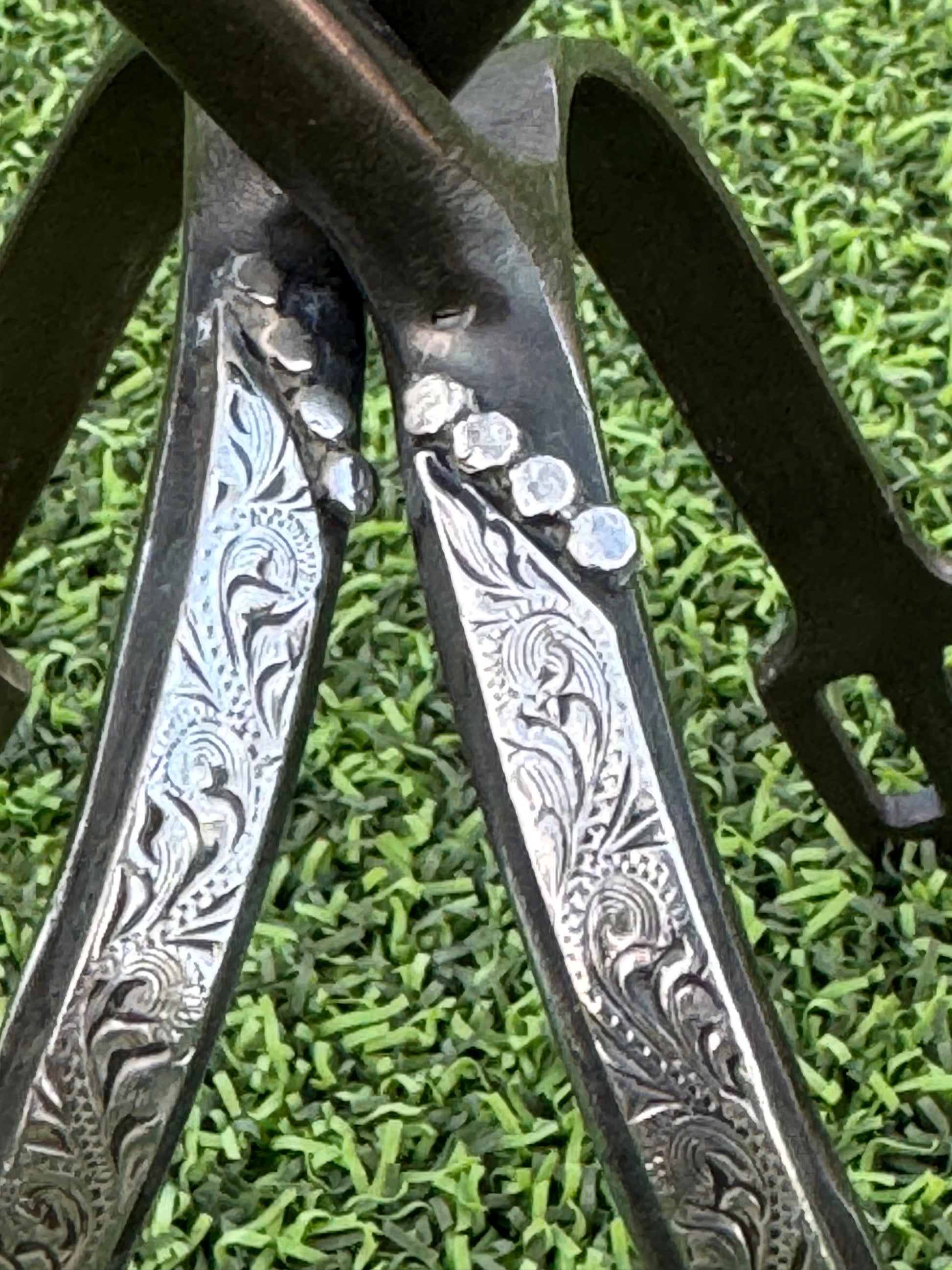 Prince of Wales spur with floral engraved sterling silver and dots