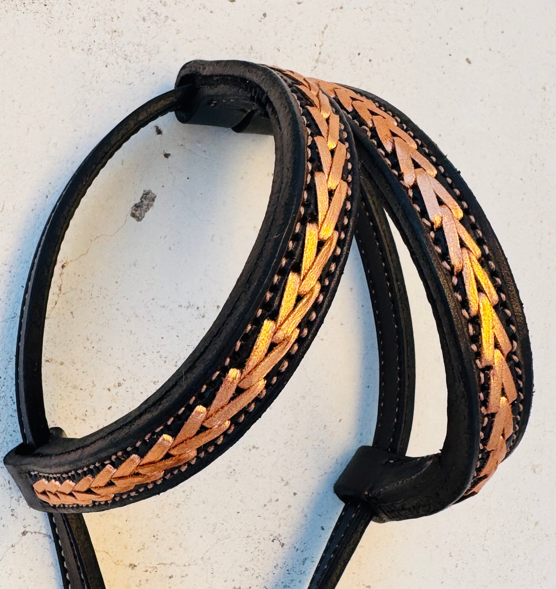 What a fun way to mixup your headstall look with these ear pieces! Chocolate with metallic copper kangaroo lacing. 9.5” long and for a 5/8” headstall.