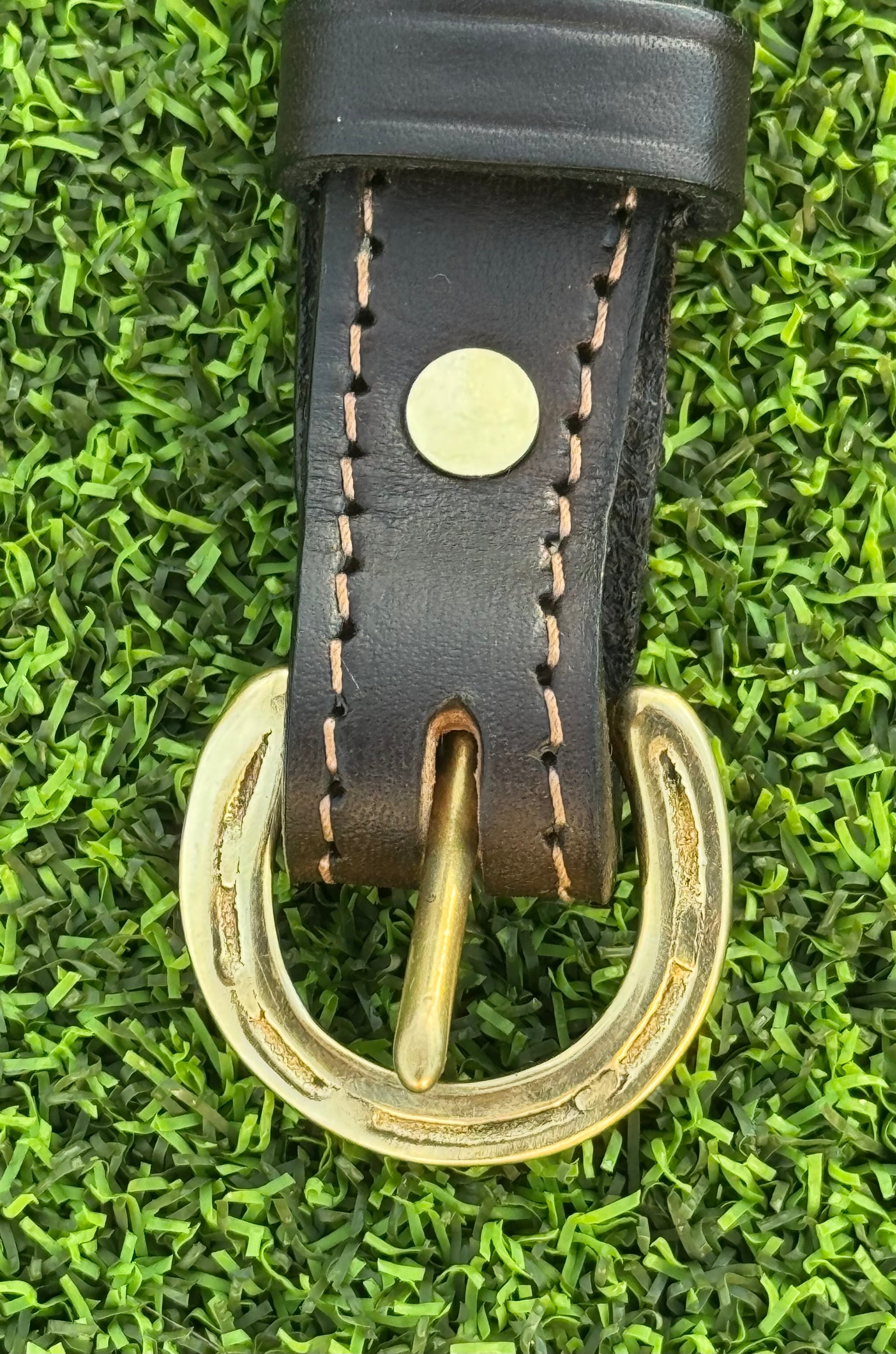 Havana tapered belt with kangaroo lacing and bronze horseshoe buckle. Features Chicago screws on the buckle end to allow alternate buckles. Hand made to match our English show halter. Fits 30-33” waist. Made with top quality leather that will stand the test of time.